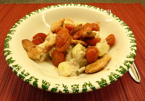Hauptgang: Thunfisch-Gnocchi mit Hähnchenbrust