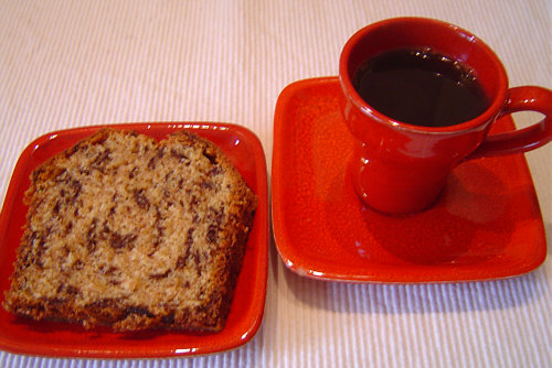 Kaffee und Schoko-Dinkel-Kuchen
