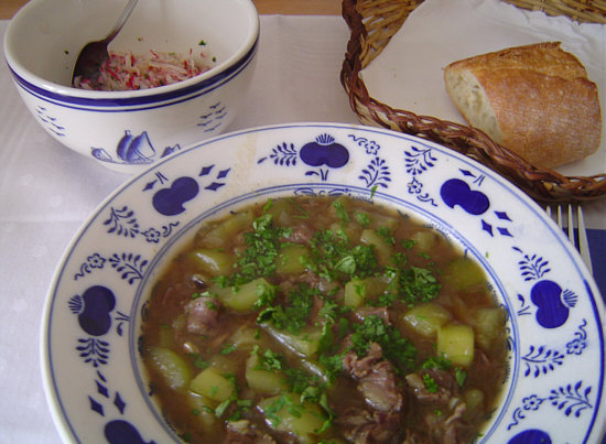 Suppe mit Spätzle - Gebackene Kartoffeln / Käse mit Schnittlauchrahm/Kartoffeln