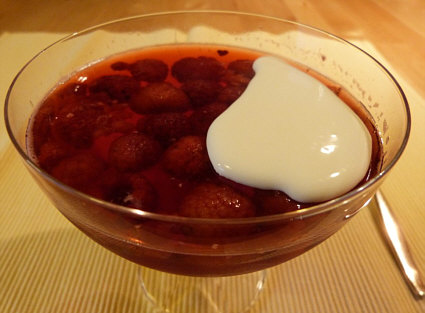 Kartoffelbrei - Himbeergötterspeise mit Himbeeren