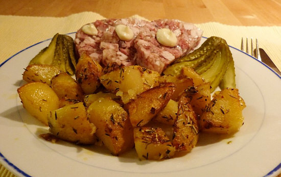 Goldenes Huhn mit Kartoffeln - Mandel-Tiramisu