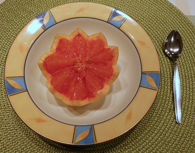 Die Pampelmuse habe ich rundherum zackenförmig eingeschnitten und so in zwei
