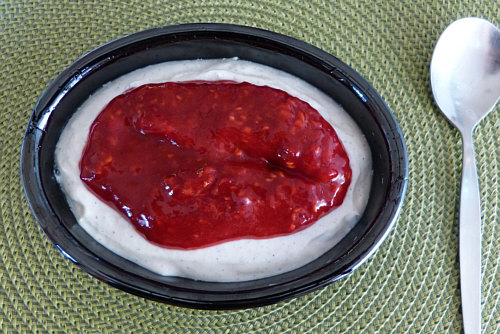 Kartoffelbrei - Himbeergötterspeise mit Himbeeren