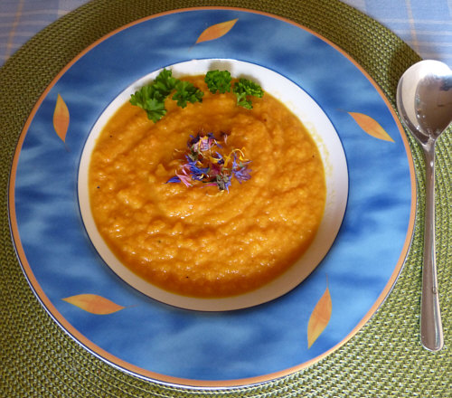 Ich habe die Suppe dann noch mit frischer Petersilie und getrockneten
