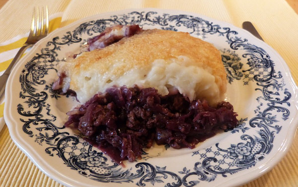 Pikanter Püree-Fleisch-Gratin -