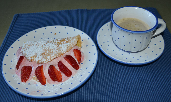 aber uns ist es süß mit pürierten Erdbeeren lieber.