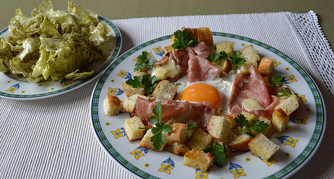 Spiegelei, grüner Salat - Reste der Weihnachtsbäckerei