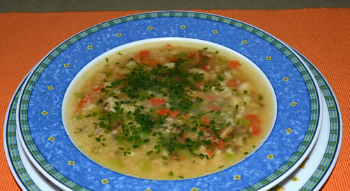 Ende der Garzeit in die kochende Suppe ca 20-30g Couscous gegeben.