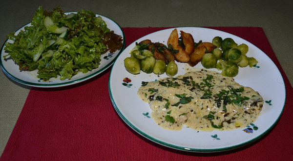 Dinkelcremesuppe, Putenschnitzel