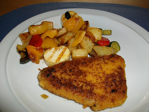 Zucchini und Paprika, dazu ein kleines Schnitzel.