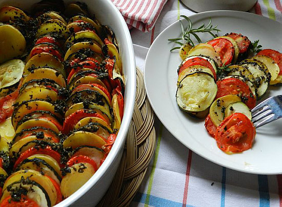 Auflauf mit Tomaten, Kartoffeln und Zucchini