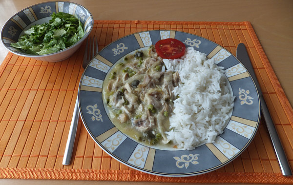 Deswegen habe ich den Rest des Hühnerfrikassees aus dem Gefrierschrank geholt,