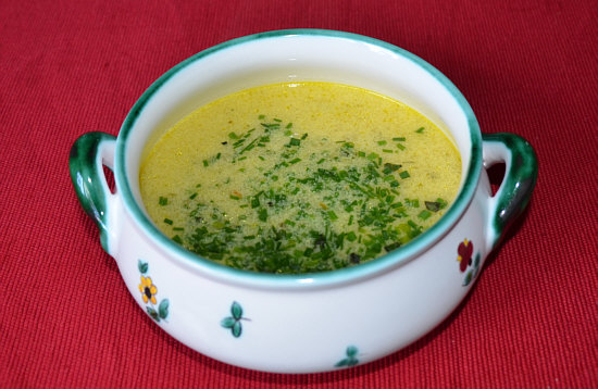 Erdäpfel-Sellerie-Suppe mit Pesto