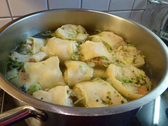 dann für ca. 15-20min in leicht sprudelnde Suppe geben.