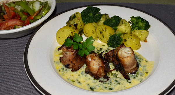 Dazu reichte ich Petersilienkartoffeln und Salat.