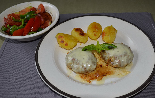 Fleisch-Laberl mit Mozzarella überbacken