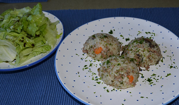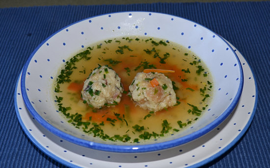 Grießnockerlsuppe - Faschiertes Bällchenragout mit Salat