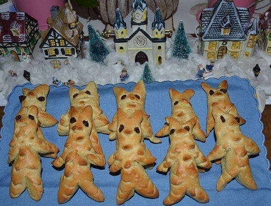 im Kopfbereich und im Hüftbereich Teig jeweils 2 mal herumdrehen