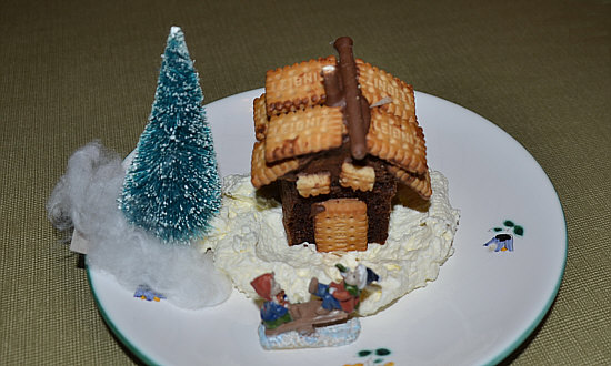 Beim Servieren habe ich als Schnee den Schlagobers auf den Teller aufgetragen