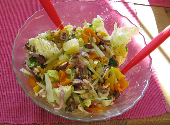 Gemischter Salat, was so im Kühlschrank lagert, Eisbergsalat, Mais, Fenchel,