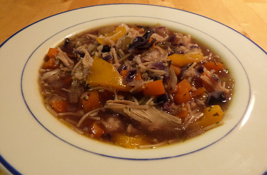 Das Gemüse habe ich kleingeschnitten und in die Brühe gegeben.