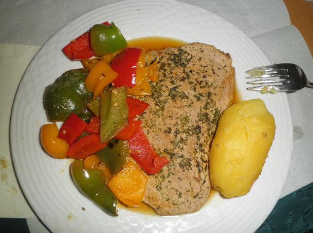 Putenschnitzel mit Paprikagemüse und Pellkartoffel