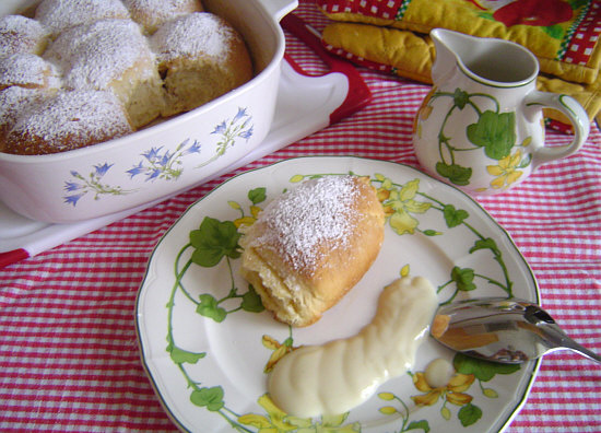 Nach dem Backen mit Puderzucker bestreuen und mit Vanillesoße servieren.