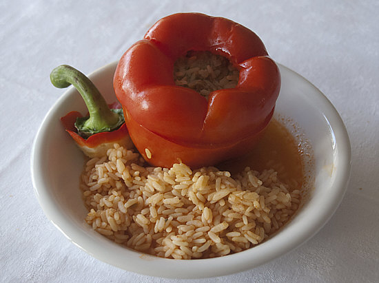 den restlichen Reis kurz darin erwärmen und mit der Paprika servieren.