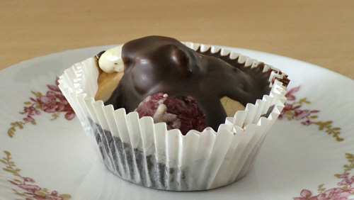 Die Schokolade mit einem Löffel großzügig auf den Muffins verteilen.