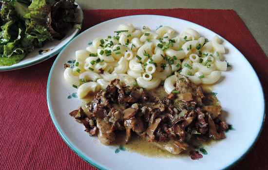 Selchsuppe, Spaghetti mit gebratenen Kräuterseitlingen, Schneeweißchen und