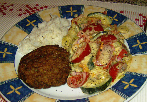 Dazu gab es eine Fertigfrikadelle vom Metzger.