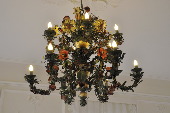 Thema des Monats: Innenaufnahmen mit Rätseldeckblatt Das ist der "weiße Saal" im Schloß Urach in Bad Urach (schwäbische Alb) mit seinen Blumenleuchtern. [Kommentieren]
