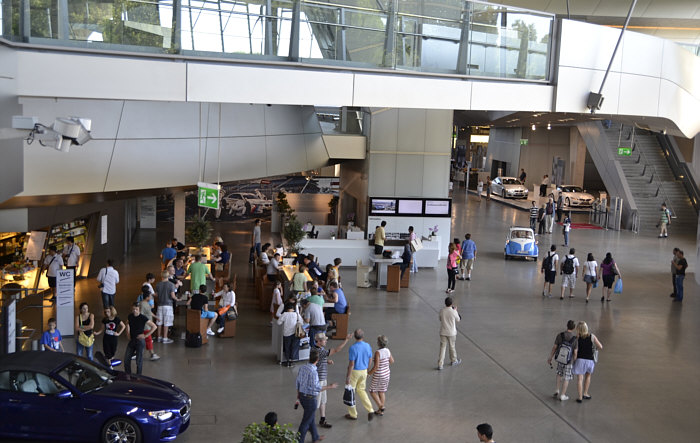 Hier gibts Technik und viele Autos ... wir sind in der "BMW Welt" in München.