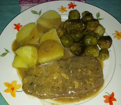 Dazu passen am besten grüne Bohnen oder Rosenkohl und Salzkartoffeln.