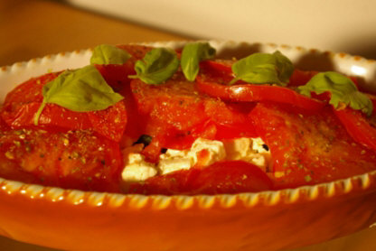 Mikrowellenauflauf: Zucchini-Feta-Tomaten