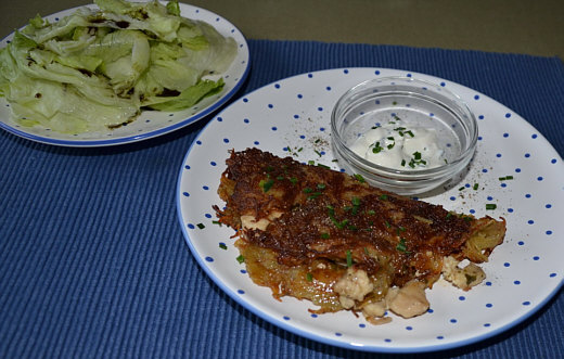 Ich reichte dazu Salat und Schnittlauch-Sauerrahm - Mahlzeit.