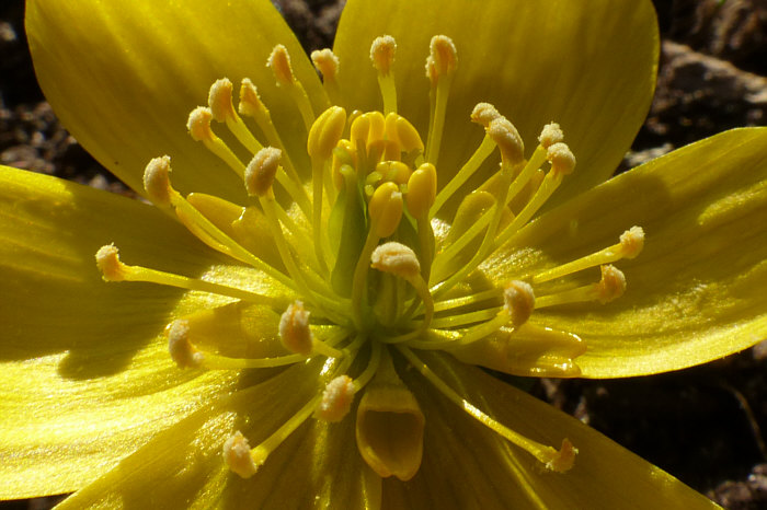 Das Innere eines Winterlings bei Sonne ... hier noch ein weiteres Bild:
