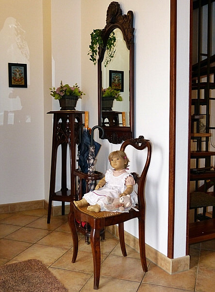 und mein Himstedtpuppenkind Liliane begrüßt darauf sitzend eventuelle Gäste."