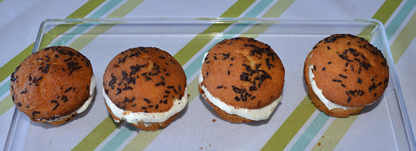 Muffins durchschneiden und füllen.