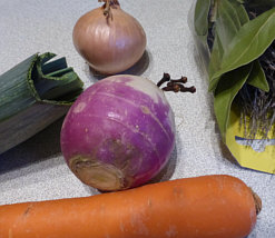 geschälte Zwiebel im Ganzen mit Nelken spicken.