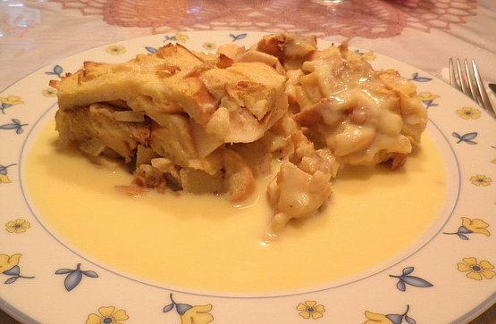Dann kann man es servieren und gibt kalte Vanillesoße dazu.