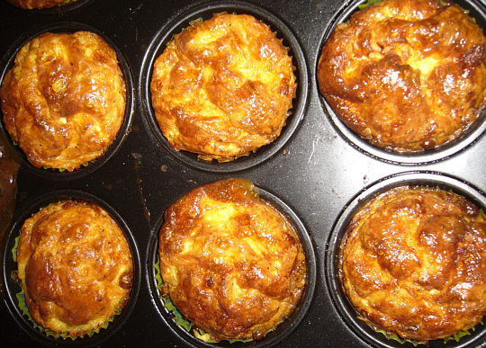einer herkömmlichen Muffinform verteilen, den Käse darüber streuen,