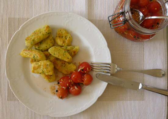 Bärlauch (Schnittlauch)-Gnocchi mit eingelegten Tomaten