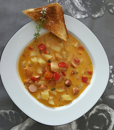 Kartoffel-Paprika-Suppe mit Crème fraîche