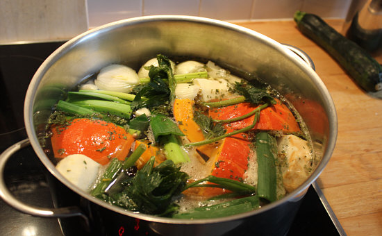 Dann 2 Stunden leise köcheln und fertig ist die Brühe.