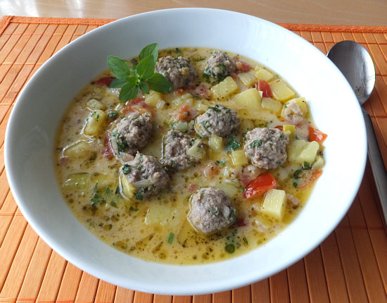 Gemüsesuppe mit Hackklößchen und Eierstich