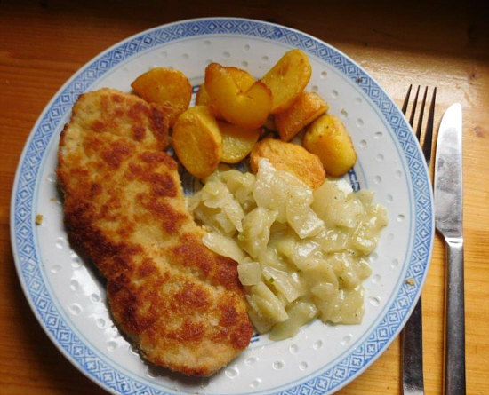 Schnitzel, Bratkartoffeln, Kohlrabi