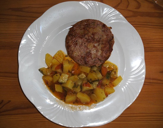 Pfälzer Saumagen mit Kartoffel-Tomaten-Zucchini-Beilage