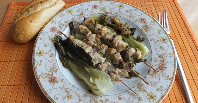 Im Ofen 12 – 15 Minuten braten, bis das Fleisch gar und der Pak Choi weich ist.