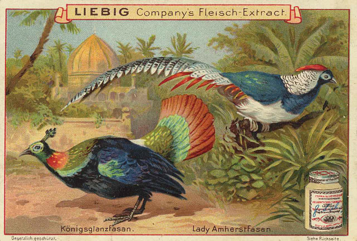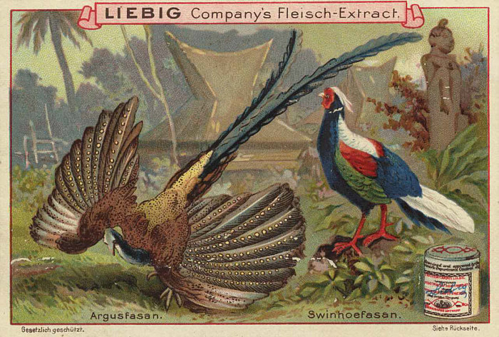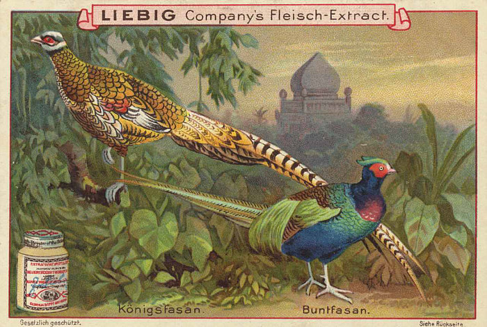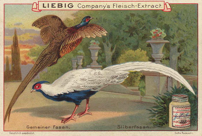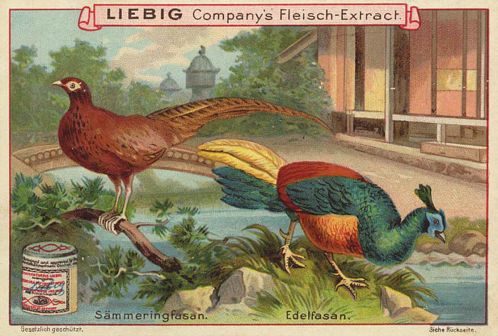 Meistens sind Menschen auf den Sammelbildern zu sehen, aber es gibt auch welche, bei denen Pflanzen oder Tiere (hier: Fasane) vorgestellt werden. [Kommentieren]